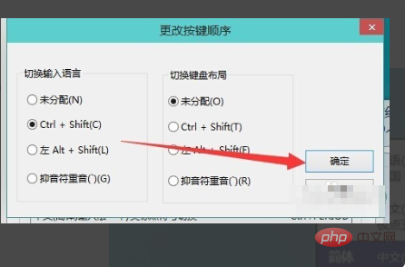 5、之后在新的界面里可以看到(Ctrl+Shift)快捷鍵的設(shè)置,選擇好快捷鍵后點(diǎn)擊“確定”選項(xiàng)即可。